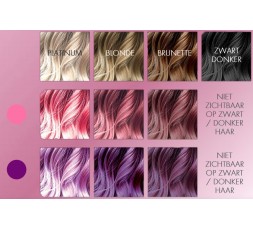 Het effect is afhankelijk van je eigen haarkleur, zie foto.